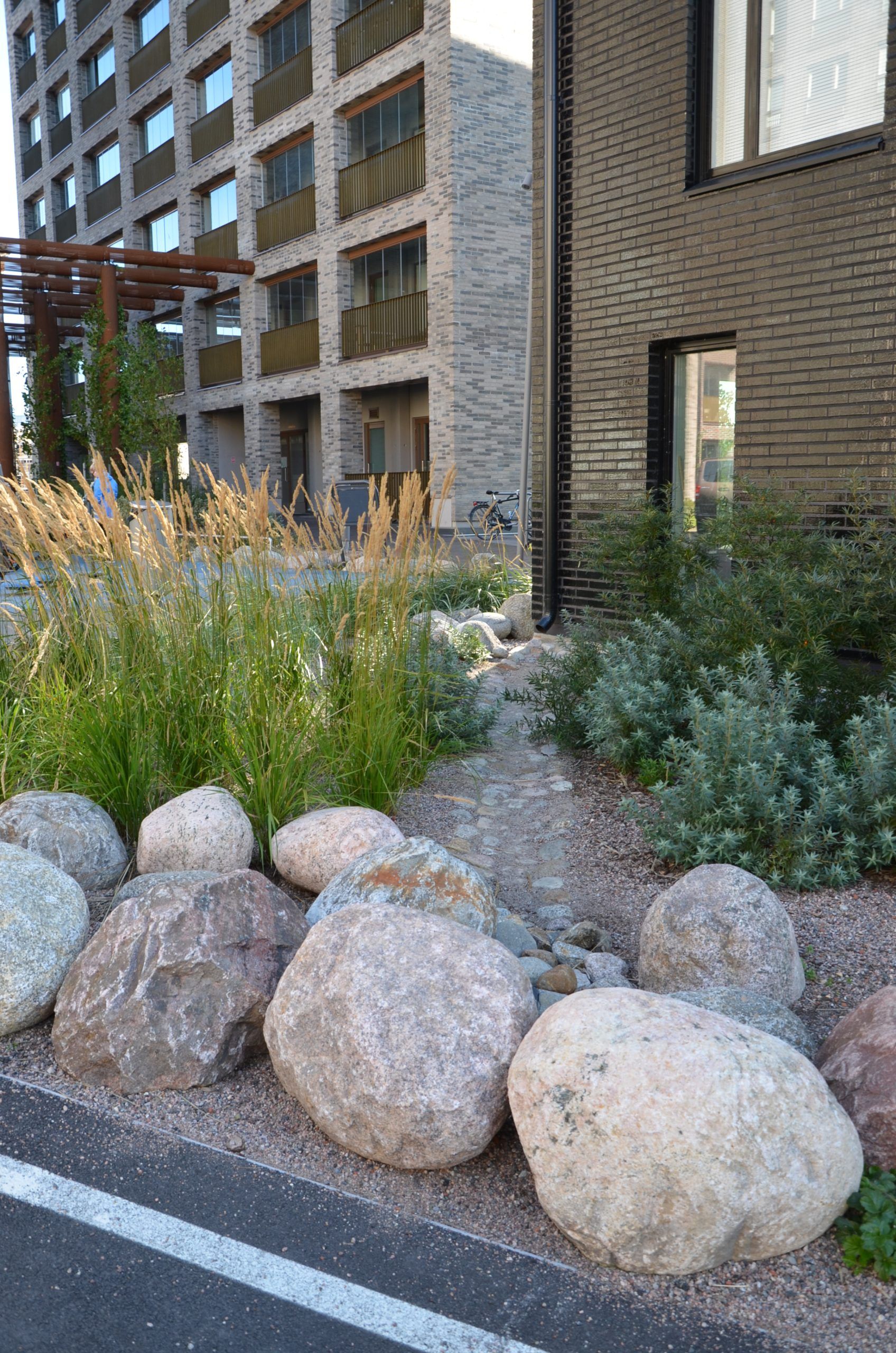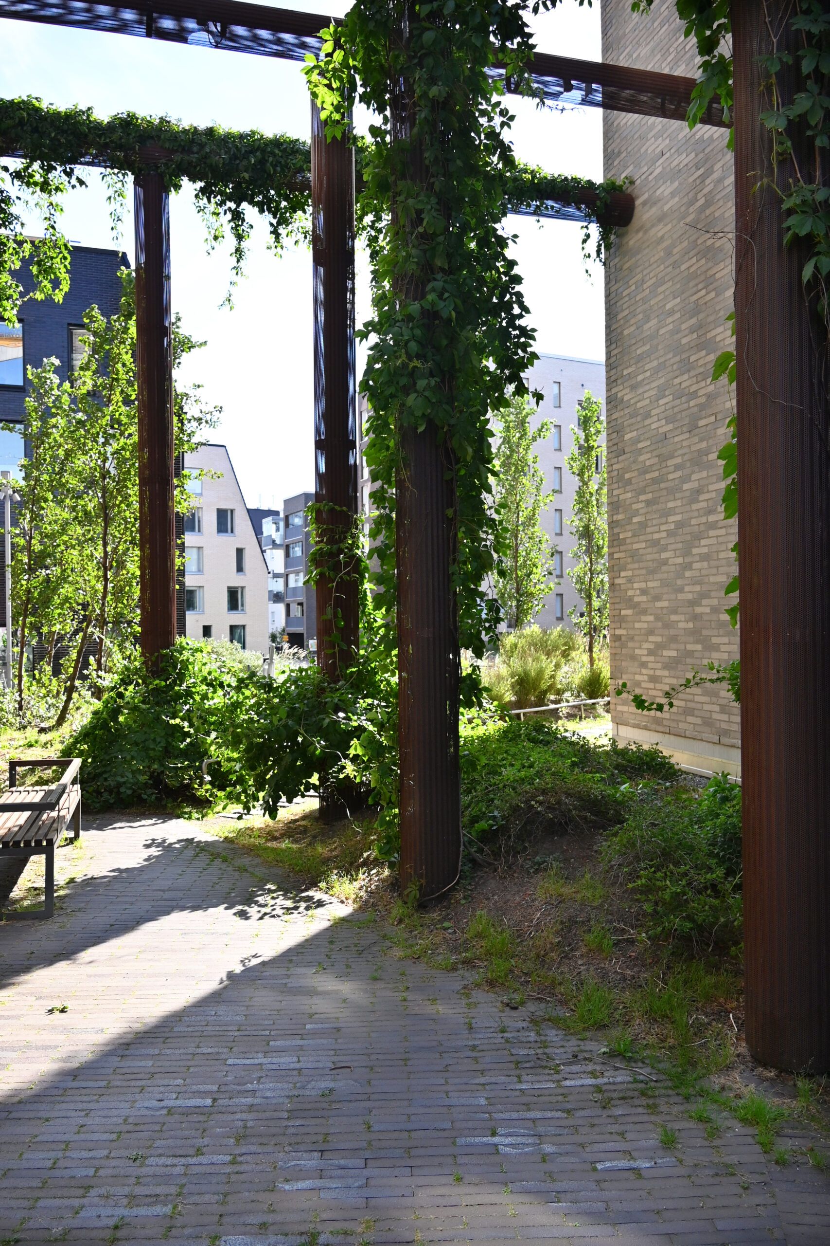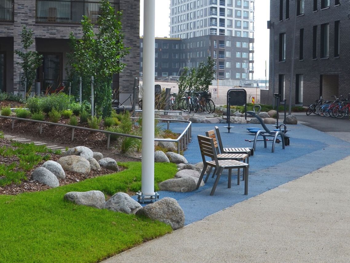 Kaikki kolme korttelipihaa ovat kansipihoja, joiden suunnittelun tavoitteena on ollut, että kansirakenne maastoutuu niin, ettei se ole havaittavissa pihaympäristössä. Pinnantasaus perustuu hulevesien johtamiseen istutusalueille kasvillisuuden käyttöön. Istutusalueet on suunniteltu niin, että pinnantasauksen optimoinnin kautta istutus ja nurmialueet saavat riittävän kasvualustan, mutta kulkupintojen alla on turhien täyttökerrosten määrä minimoitu.