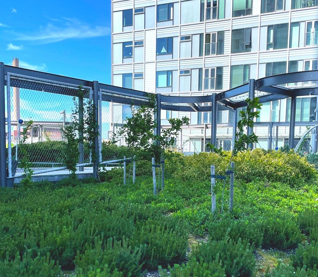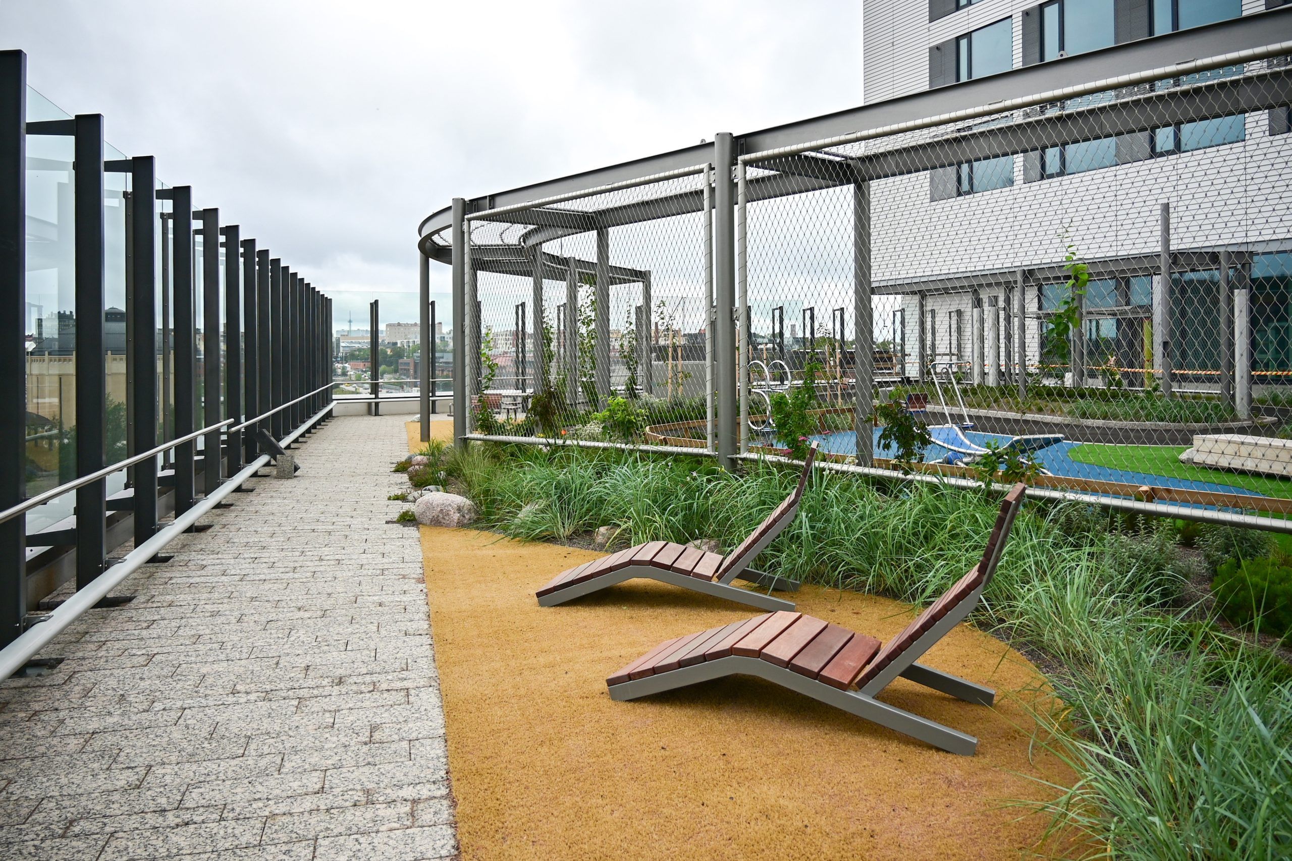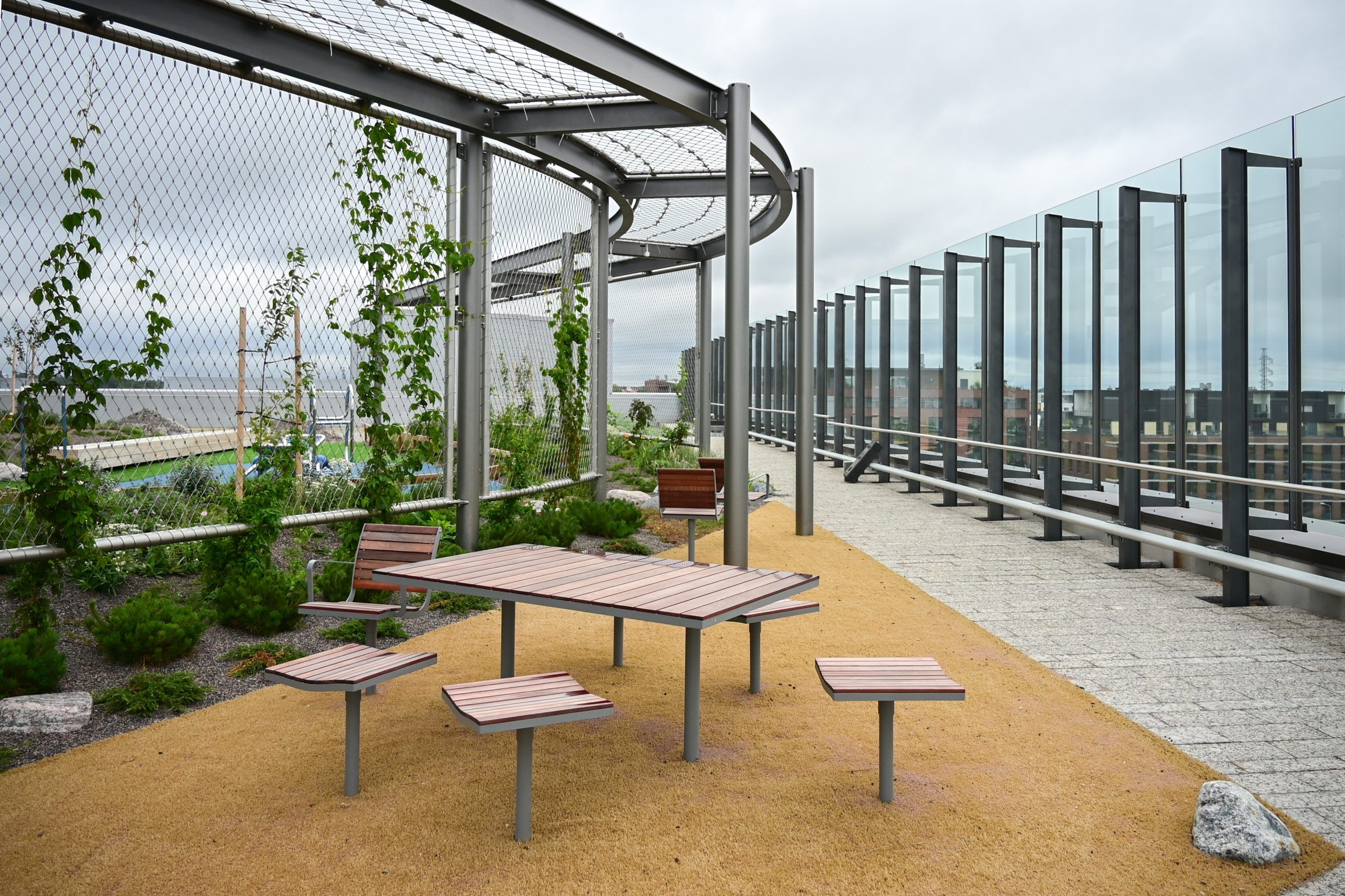 Puistokansi Bryga ja kahdeksan tornitalon yhteyteen rakennettavat pihat muodostavat poikkeuksellisen laajan kannelle rakennetun ulkotilakokonaisuuden. Kohde sijaitsee Helsingin Kalasatamassa, kauppakeskus Redin katolla ja Junatien päällä ympäröiviä katualueita 20–25 metriä korkeammalla.
