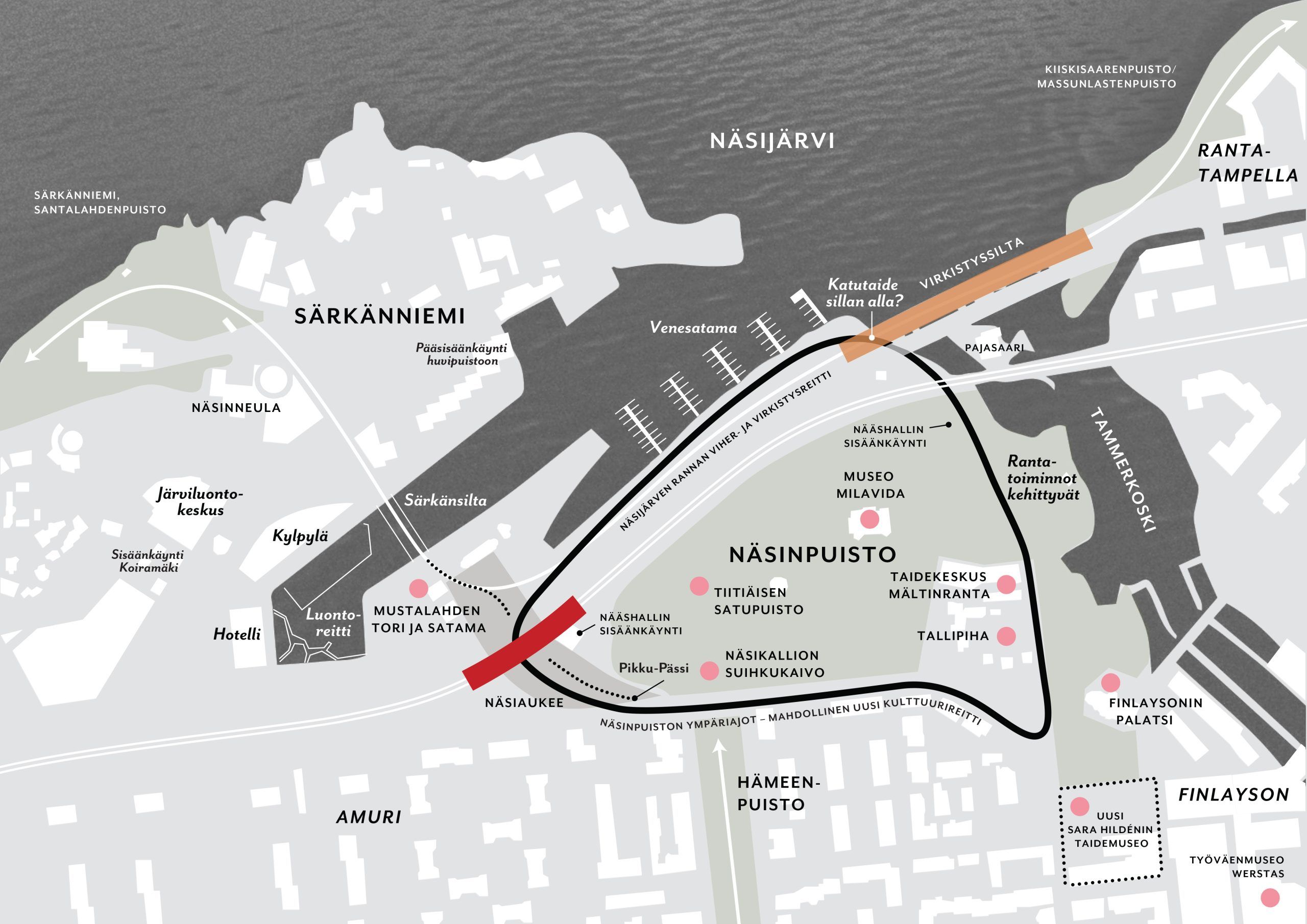 Sillanalus on tärkeä kaupunkikuvallinen porttiaihe. Maanlumo on laatinut ideasuunnitelman sillan alustatilojen väliaikaissuunnittelusta, värisuunnitelman sillan väreistä sekä vihersuunnitelman Näsiaukealle. Konseptissa sillan alta virtaavan ihmisten liikkeen reitit muodostavat läpi johdattavan vastamuodon ratasillalle. Sillanalustilat on muutettu yllä kulkevien junien vaunuista inspiraationsa saaviksi tiloiksi värityksen ja tilaelementtien avulla. Tavoitteena työssä on ollut saada mielenkiinto aluetta ja sen tulevaisuutta kohtaan heräämään.
