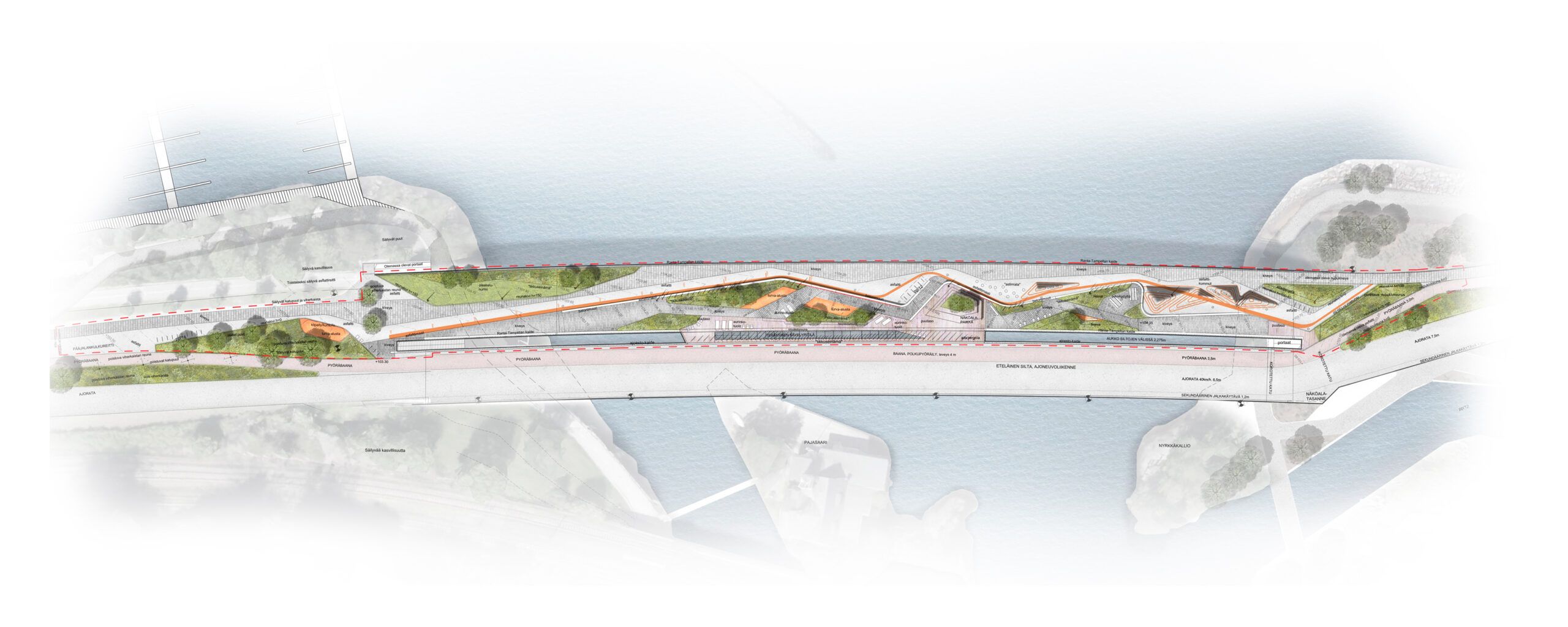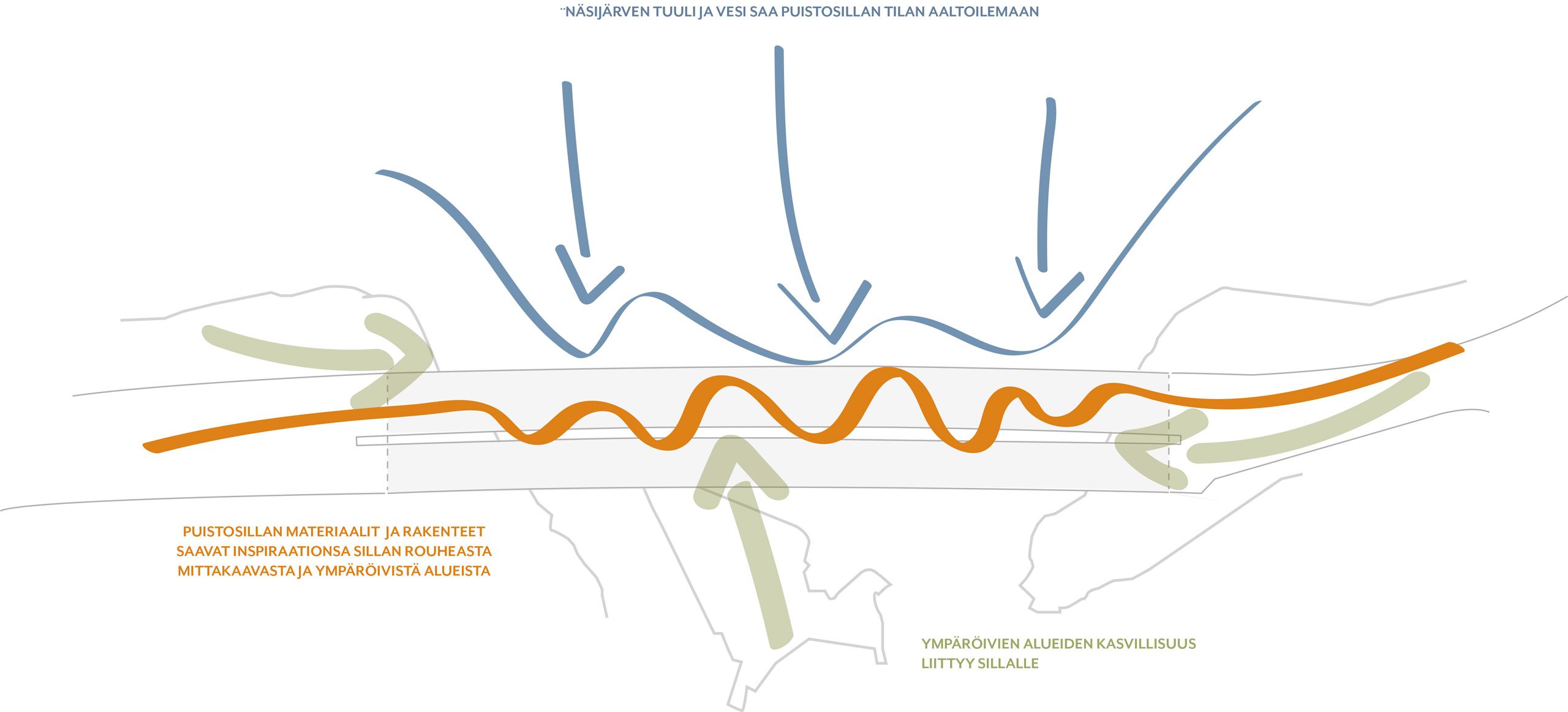 Puistosillan jäsentely saa inspiraationsa Näsijärven laajan selän luonnonvoimien liikkeestä. Aaltojen ja voimakkaiden tuulien ”vaikutus” näkyy sillan muotokielessä. Matala, sillan pituussuuntainen aaltoileva luonnonkivimuuri jakaa puistosillan kahteen erilaiseen osaan: liikkumisen vyöhykkeeseen ja muurilla korotettuun oleskelun alueeseen. Matalan muurin aaltoileva muoto luo pitkään siltatilaan selkeän aiheen ja muodostaa sillalle miellyttävän mittakaavan oleskeluun.