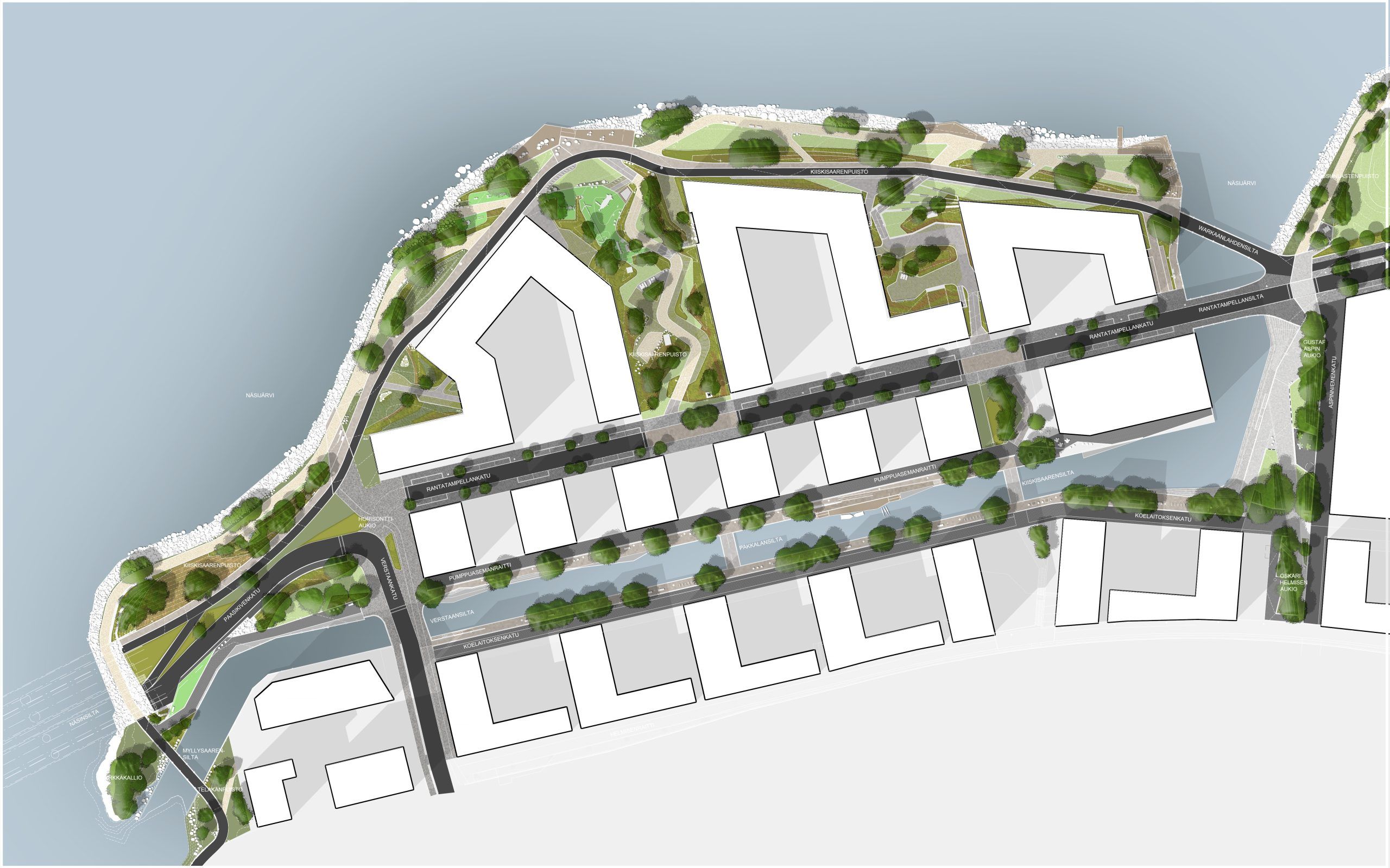 Kiiskisaarenpuiston kokonaismuotokieli saa inspiraationsa Näsijärven tuulesta ja aalloista. Maastonmuodot viettävät kohti järveä ja kasvillisuuden jäsentely vahvistaa aaltoilevaa muotokieltä. Kansien päälle sijoittuvat puistot on huolellisella maastonmuotoilulla otettu luontevaksi ja toiminnalliseksi osaksi kokonaisuutta ja suunnittelussa on sekä häivytetty että hyödynnetty kansirakenteita ja korkoeroja. Toiminnoiltaan Kiiskisaarenpuisto on monipuolinen sisältäen pyöräilyn- ja jalankulun nopean reitin, kuntoilu- ja leikkipaikan, erilaisia levähdys-, piknik- ja oleskelualueita, näköalakatsomon, ranta-aukioita laitureineen ja penkki- ja pöytäryhmineen ja veneiden pysähtymislaiturin.