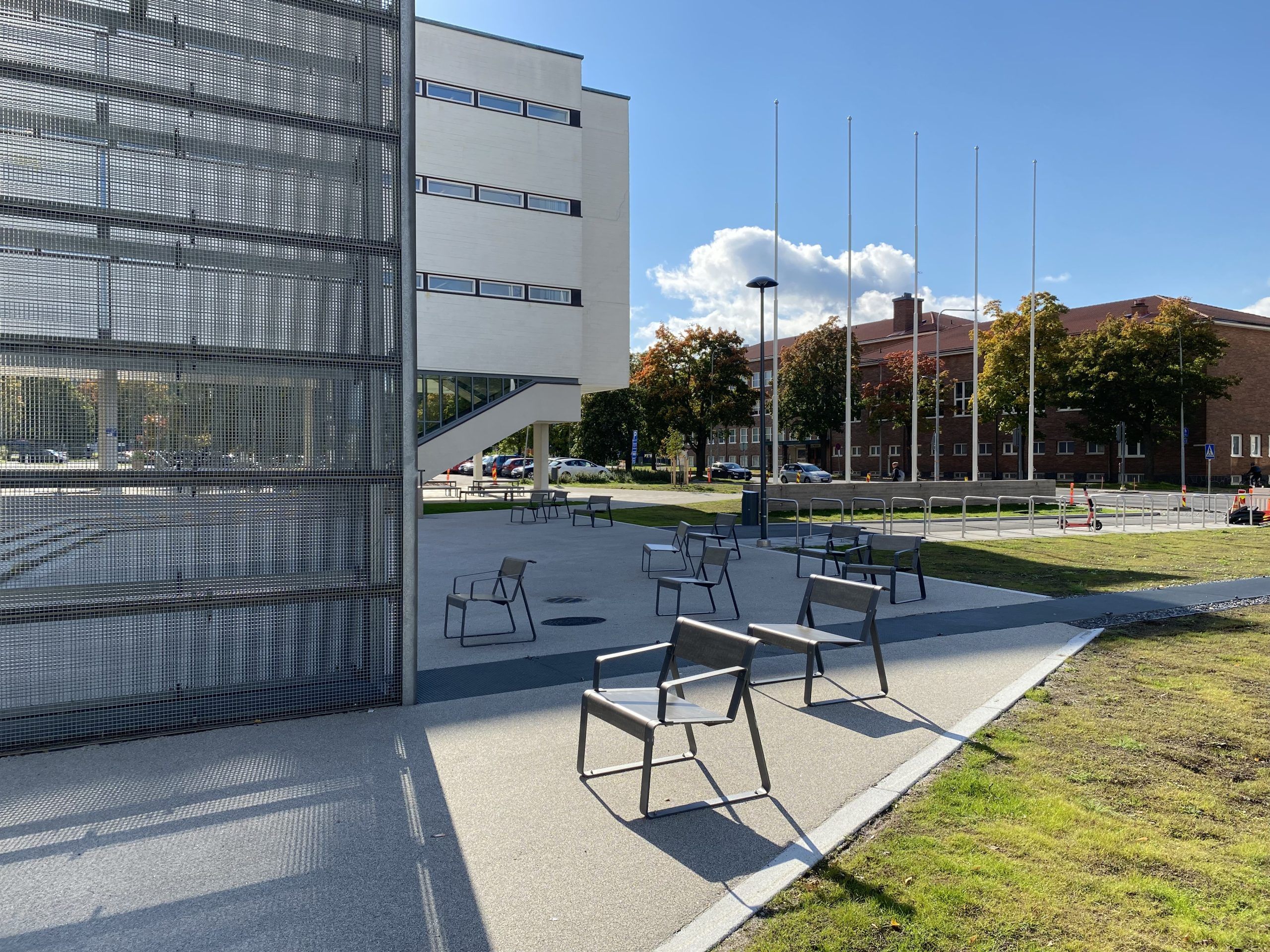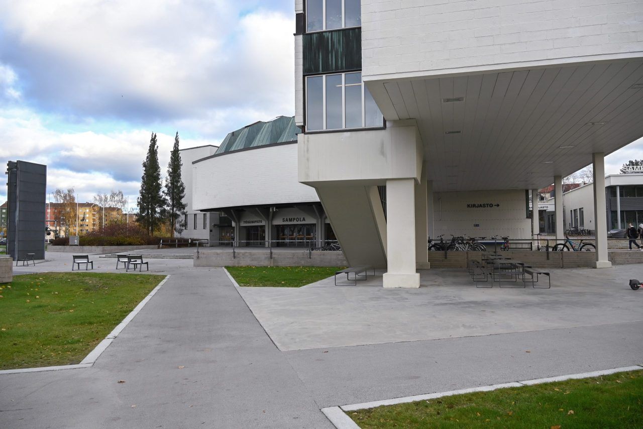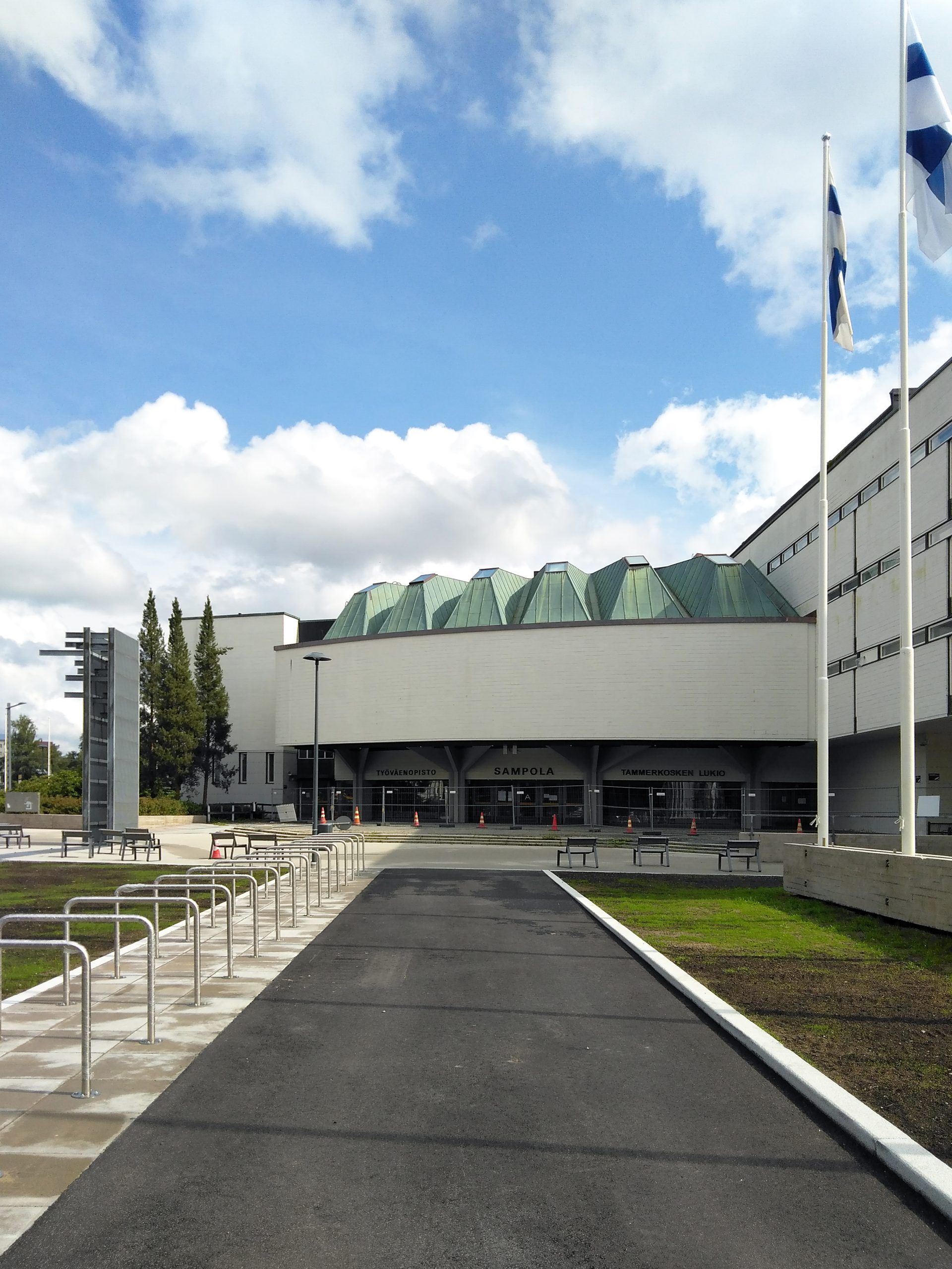 Sammonaukio ja Sampolan piha on monialaisena yhteistyönä suunniteltu kokonaisuus, joka muotoilullaan korostaa ja tukee kulttuurihistoriallisesti arvokasta rakennusta. Pihalle sijoittuu Villu Jaanisoon ja Jorma Mukalan taideteos Valolähde (1999) ja uusi Pasi Karjulan puuveistos Kuutalo (2022), joka on osa Tampereen ratikan taiteen kokoelmaa. Kulkuyhteyksien ja käytävien selkeyttäminen ja hierarkian luominen ovat helpottaneet liikkumista. Pihalle on luotu tilaa oleskelulle ja kohtaamisille, mikä palvelee rakennuksen monia käyttäjiä.