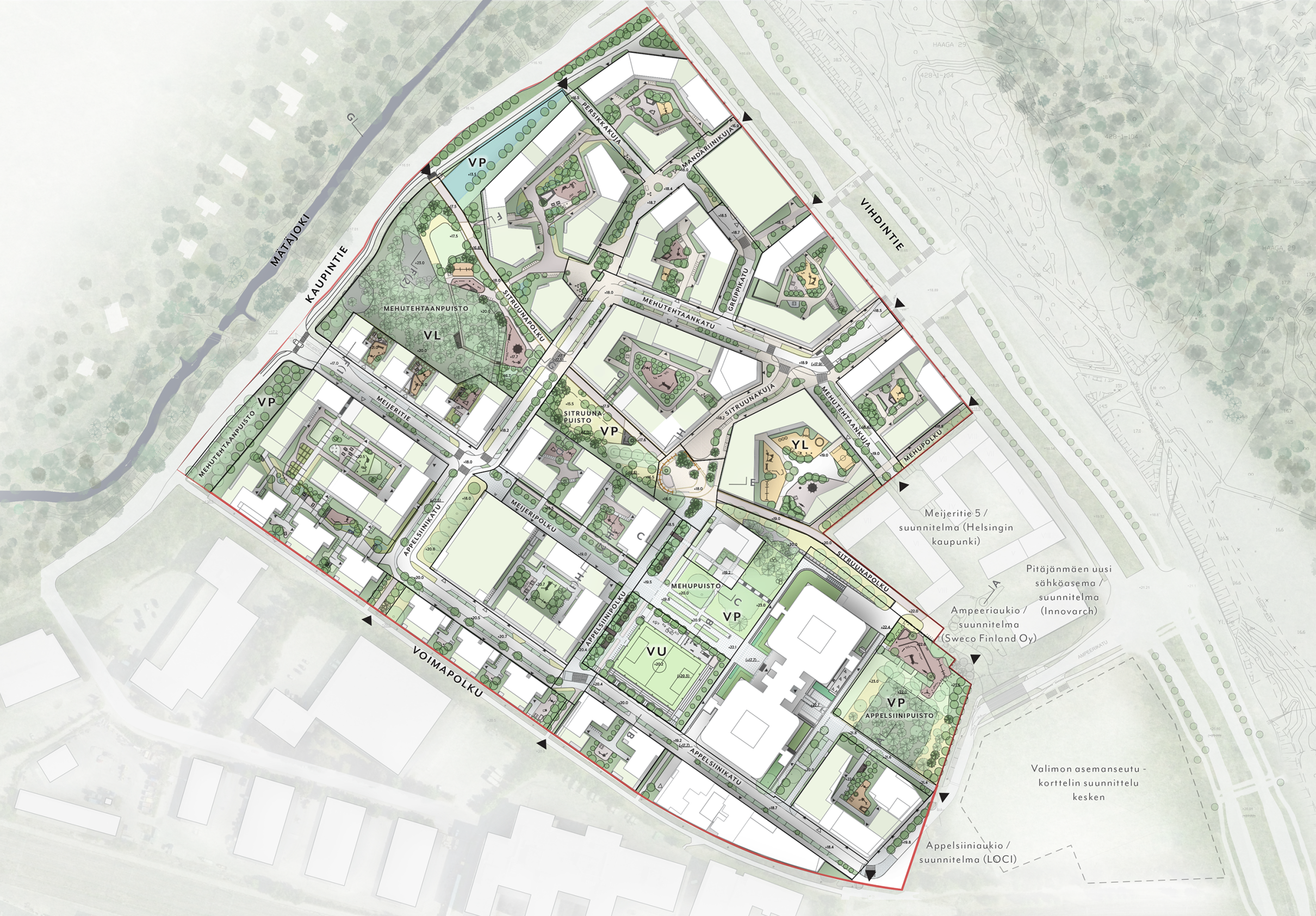 Suunnittelua on tehty koko alueen mittakaavassa esimerkiksi julkisten puistojen ja korttelikokonaisuuksien tilasarjoilla sekä muodostamalla koko suunnittelualueelle yhtenäinen konsepti, joka ohjaa alueen tulevaa suunnittelua. Keskeisenä teemana on hulevesien käsittely luontopohjaisin ratkaisuin. Säilytettävä Valion päärakennus ympäristöineen tuo oman mausteensa muuten modernisti kehittyvälle alueelle.